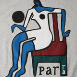 Chair baller artwork as a water-based screen print at the back and also small print on the chest. All Parra t-shirts are a boxy custom fit.