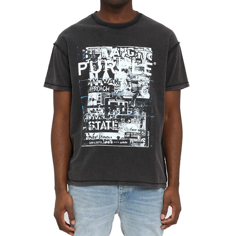 Purple Inside Out Textured Distressed SS Tee